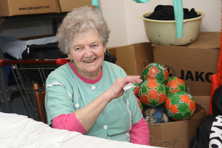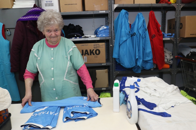 – Tizenhat évesen 1953-ban kerültem a Tatabányai Sport Clubhoz, kifutónak. Aztán takarítónő lettem. Majd a stadion mosodájában dolgoztam tíz évig. Hetvenben kerültem a szertárba. Emlékszem, ha esett az eső, mindig sajnáltam a kézilabdás fiúkat, hogy át kell gyalogolniuk az öltözőből a szabadtéri pályára, ami a klubház tövében volt. A '90-es években, amikor a kézilabda szakosztályból önálló egyesület lett akkor költöztem én is a sportcsarnokba és azóta egyhuzamban itt dolgozom.